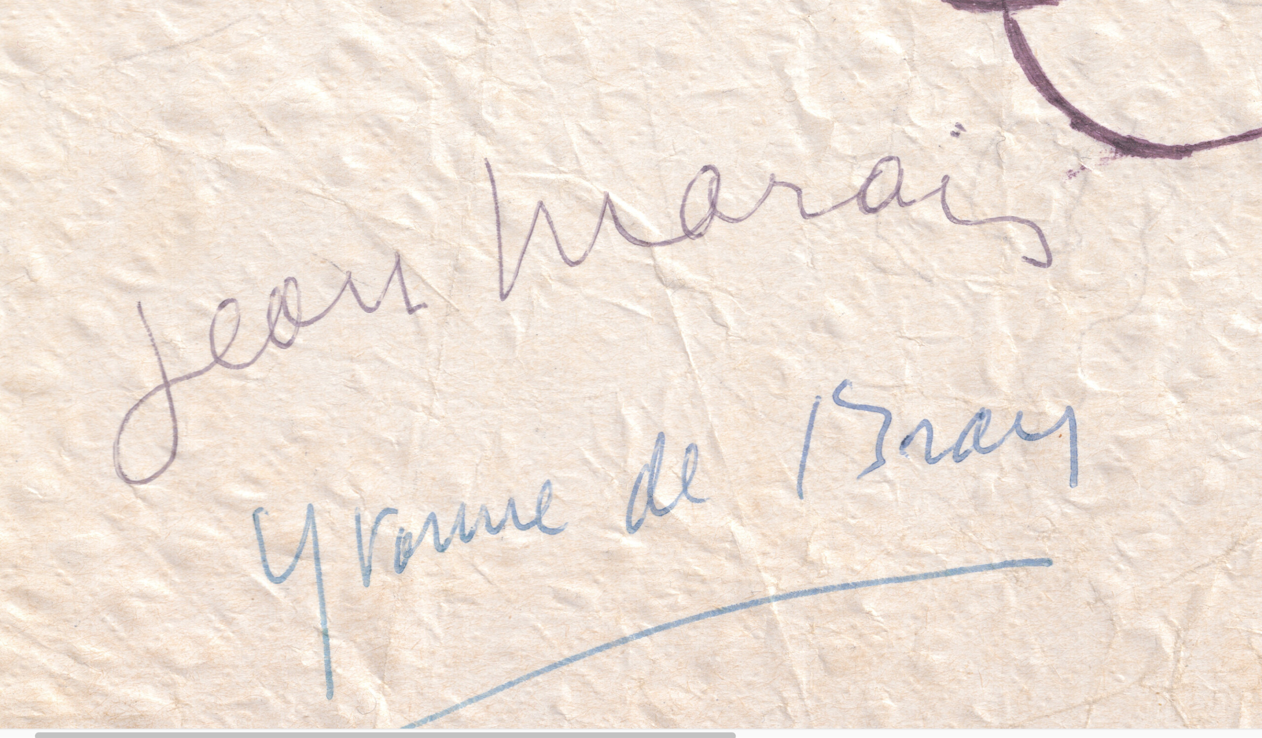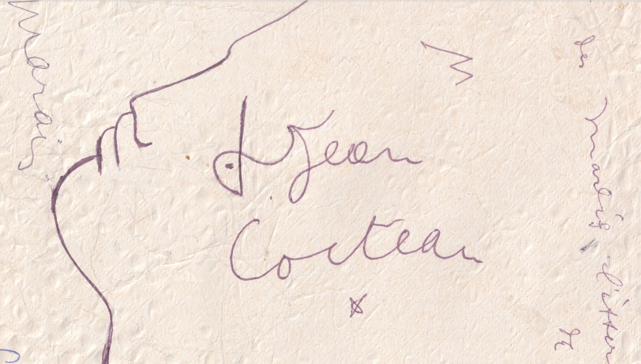 Dessin original réunissant les signatures de Jean Cocteau, Jean Genet et Jean Marais.